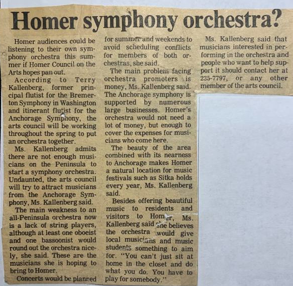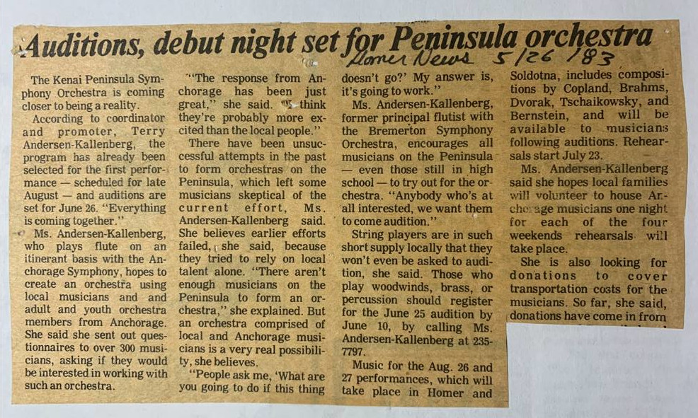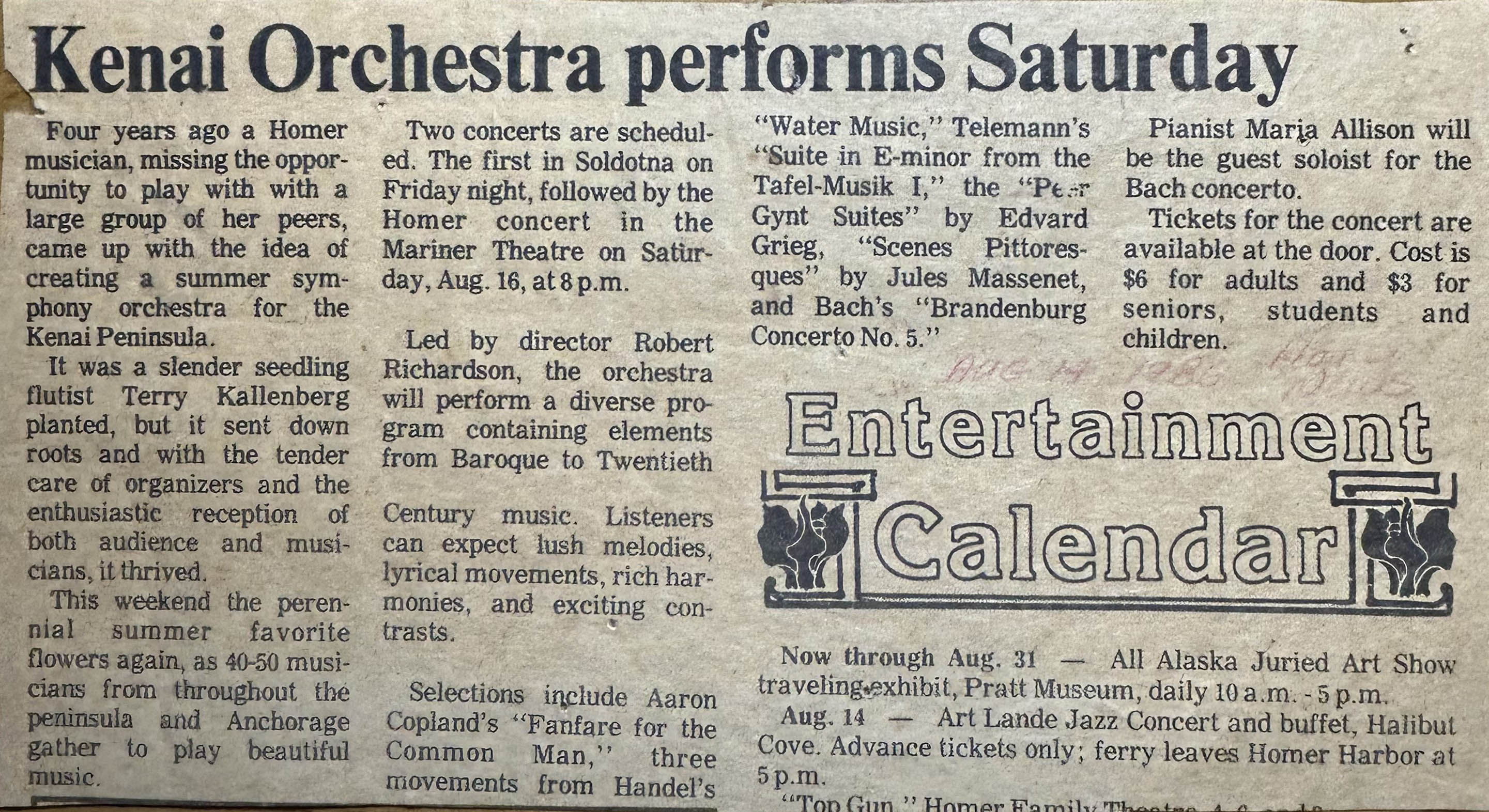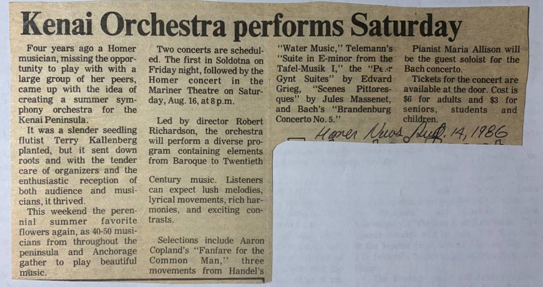 "Terry founded the orchestra in 1983 and has consistently brought the best classical music to this town." - Homer News